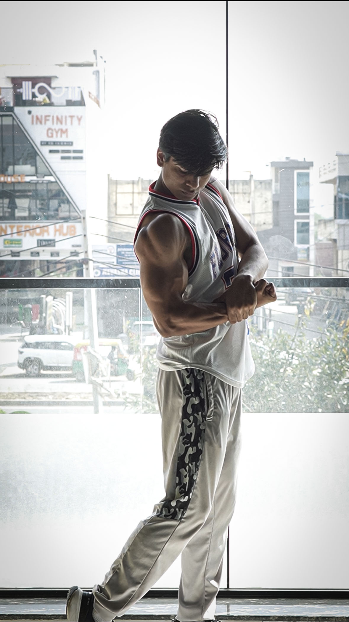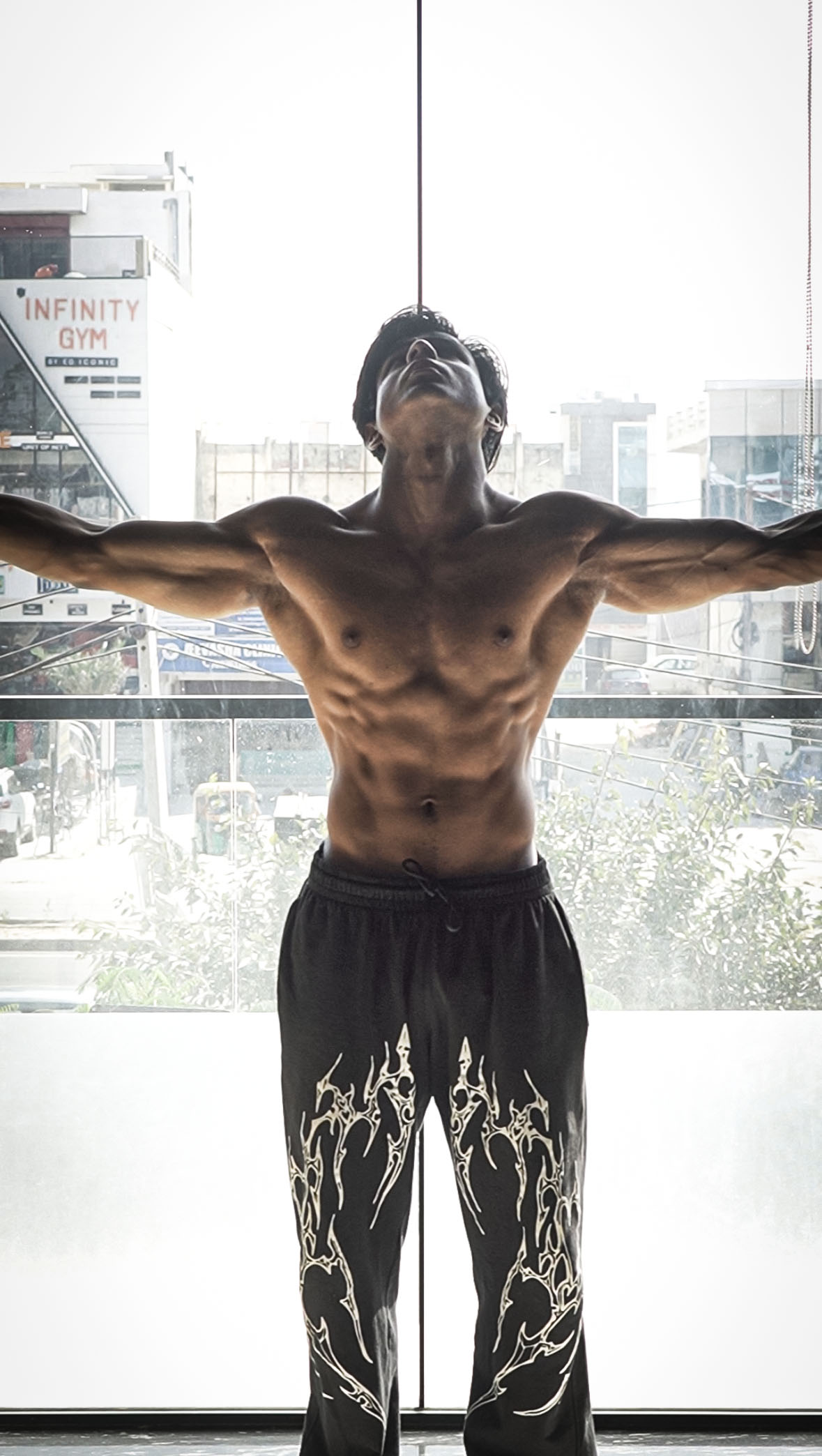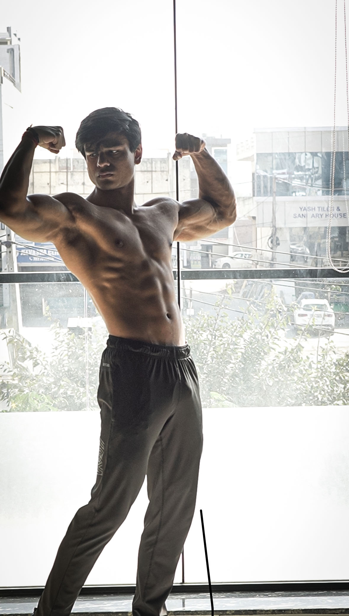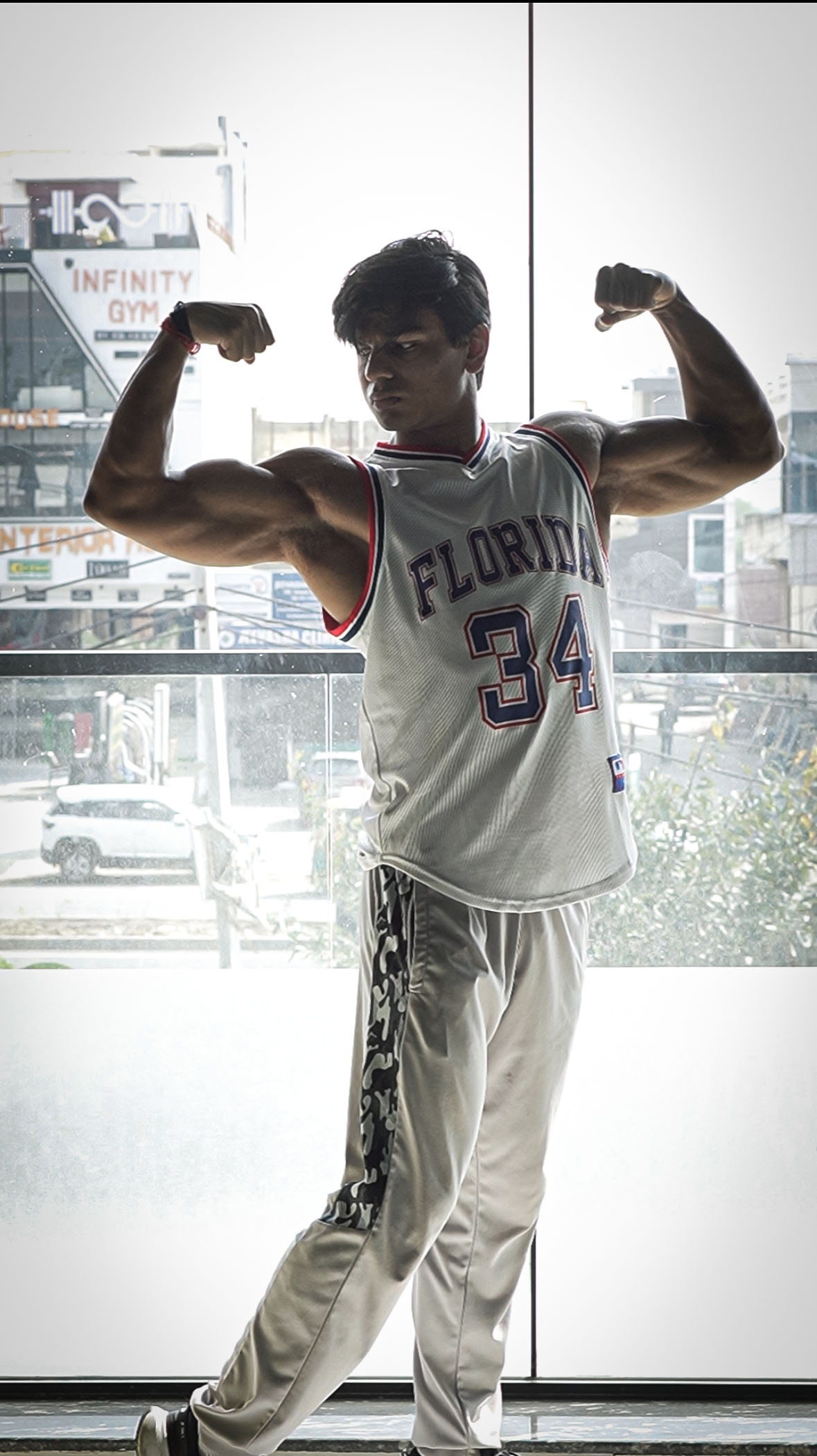 Within just 8 months, Ayush went from a 35 kg skinny kid to a 69 kg muscular teen, earning admiration from those around him. Through consistent bulking and cutting cycles over 6 years, he sculpted a sharp, well-defined physique,